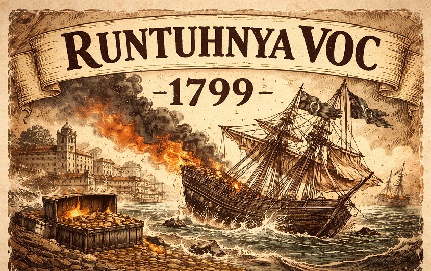 Pada akhirnya, pada tahun 1799, VOC resmi dibubarkan. Seluruh aset, utang, dan wilayah kekuasaannya diambil alih oleh negara Belanda. Perusahaan yang pernah disebut sebagai salah satu yang terkaya dalam sejarah manusia runtuh — bukan karena satu kekalahan besar, tetapi karena akumulasi kesalahan yang dibiarkan terlalu lama.